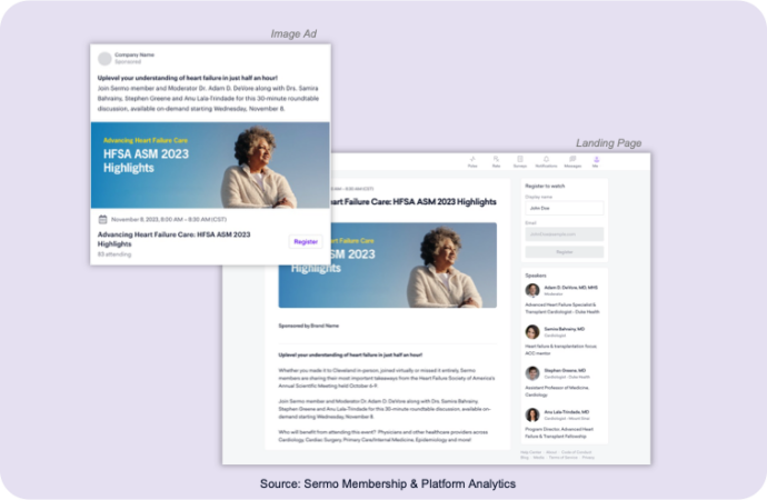To amplify insights from the Heart Failure Society of America Annual Meeting, Sermo hosted a peer-led discussion featuring experts from Duke and Mount Sinai, sponsored by a leading pharmaceutical manufacturer. With editorial guidance tailored to the panel’s expertise, we engaged U.S. cardiologists and PCPs in a dynamic conversation that extended the meeting’s impact far beyond the event.
