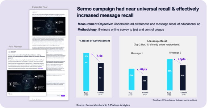 To enhance message recall among Italian cardiologists and PCPs, Sermo launched an interactive, unbranded video campaign featuring poll engagement. Highlighting real-world evidence from a meta-study of 430K cardiology patients, the three-month initiative achieved 2x the targeted video views, reinforcing key insights through concise, impactful content.