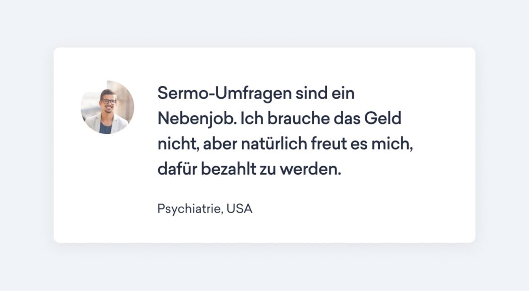 Bei Sermo geht es uns vor allem darum, medizinische Fachkräfte zu befähigen, das Beste aus sich herauszuholen — darum bieten wir ihnen mit unseren bezahlten Umfragen für Ärzt*innen Gelegenheit zum Geldverdienen.
