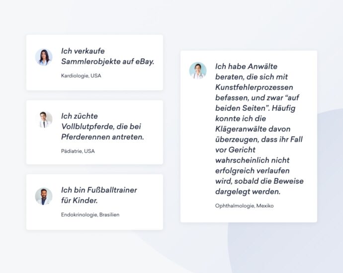 Manche Ärzt*innen erhalten sogar einen Vorschuss von einem Anwalt oder einer Rechtsabteilung, mit dem/der sie regelmäßig zusammenarbeiten.