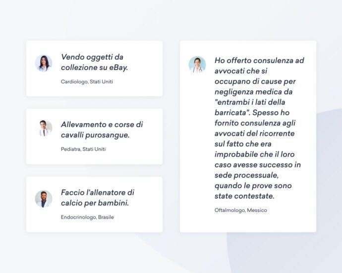 La valutazione delle richieste di risarcimento assicurativo può essere onerosa in termini di tempo, poiché spesso tali richieste sono corredate da numerosi grafici e statistiche. Tuttavia, i medici impegnati che hanno tempo possono potenzialmente guadagnare migliaia di euro al mese per questo lavoro.