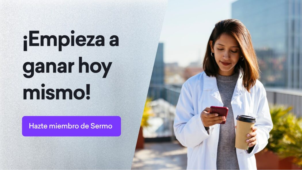 En Sermo, nos dedicamos a que los profesionales de la salud alcancen su máximo potencial; por eso les ofrecemos oportunidades para ganar dinero a través de nuestras encuestas médicas remuneradas.