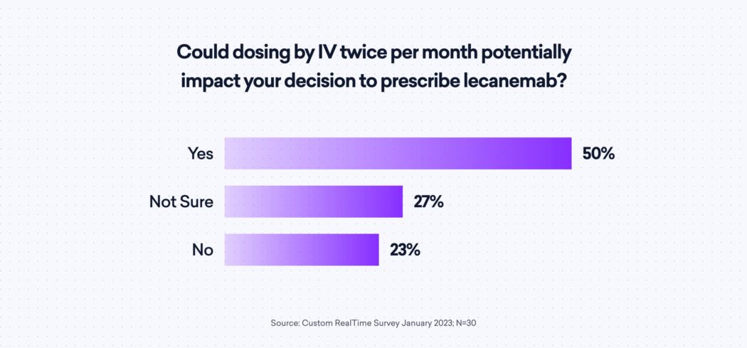Some neurologists in the study see the formulary coverage being a critical component. They also shared mixed feelings about IV administration, even with 83% reporting having on-site IV administrative capabilities. The need for twice monthly IV dosings has 50% of surveyed neurologists agree that it would impact their decision; another 27% are unsure.