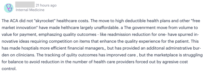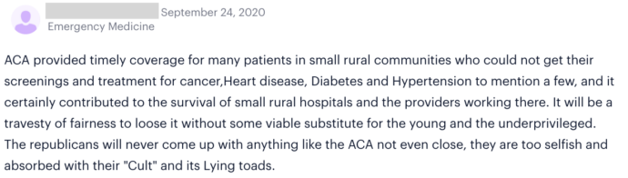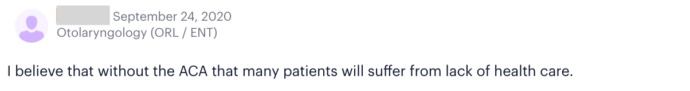 In a poll of about 575 global Sermo doctors, 71% responded that they believe the future of the Affordable Care Act is in jeopardy without Justice Ginsburg on the bench. When asked whether they support the ACA, 60% responded yes, and 59% said they are concerned their patients may lose health coverage without the ACA intact.