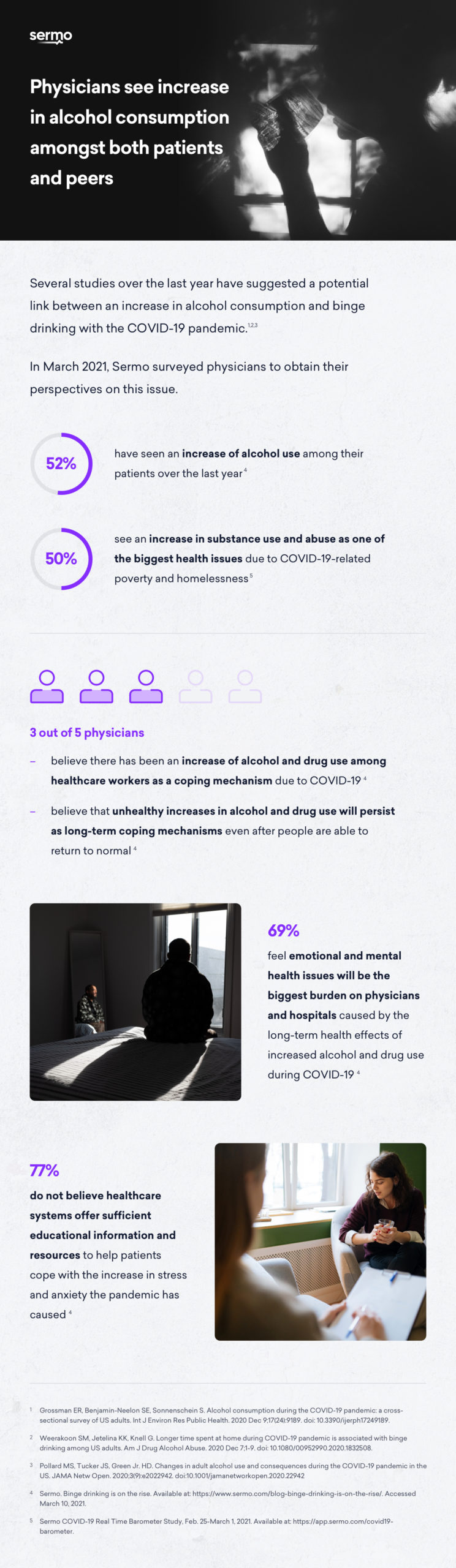 Even when the pandemic is behind us, 66% of physicians believe that unhealthy increases in alcohol and drug use will persist as long-term coping mechanisms. See below for a quick recap of our findings: