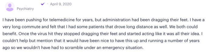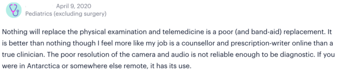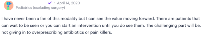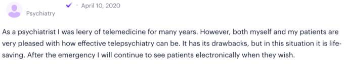 In a poll of 1,300+ Sermo physicians, 85% confirmed that they are now seeing patients via video or telephone; and 90% of them have colleagues who are using telemedicine. When asked about this drastic shift away from in-person visits, 68% responded that they believe it will have a lasting impact on how doctors see patients—it’s showing the world that telemedicine can be effective. In contrast, 28% of the physicians polled believe that seeing patients in person is far too important for this movement to take hold. That said, given the right circumstances, 77% support the shift toward telemedicine.