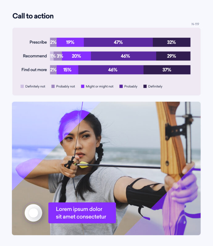 Timeline: Once the creative stimuli and questionnaire was approved, the project fielded and delivered within 3 weeks. Once fielding began, the client had live access to results to get early read-outs of the winning concepts and received fast-tracked delivery of a fully storylined report with strategic recommendations from Sermo’s team of Market Research experts.